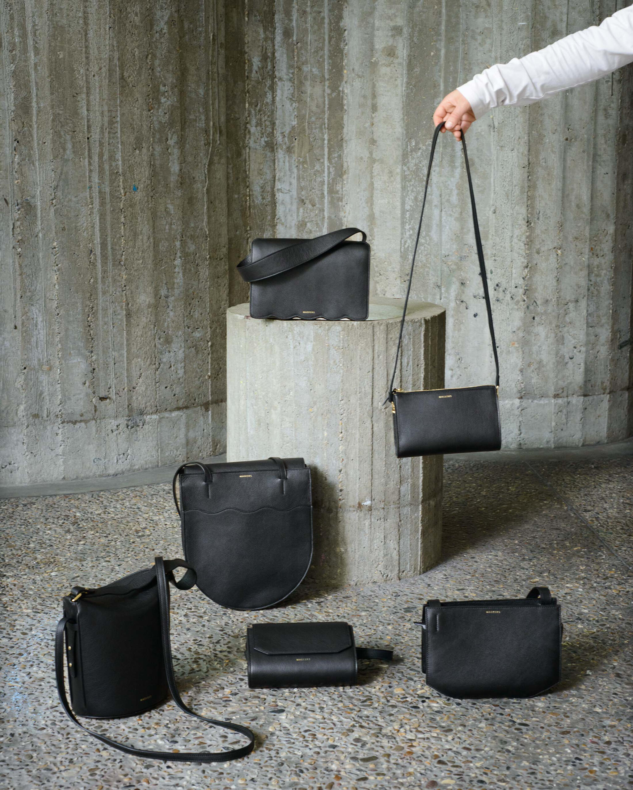Alle handtassen van Maekers worden op maat gemaakt in het atelier in Antwerpen. Omdat elk ontwerp met de hand wordt vervaardigd, reken je best op een levertijd van minimum zes weken.