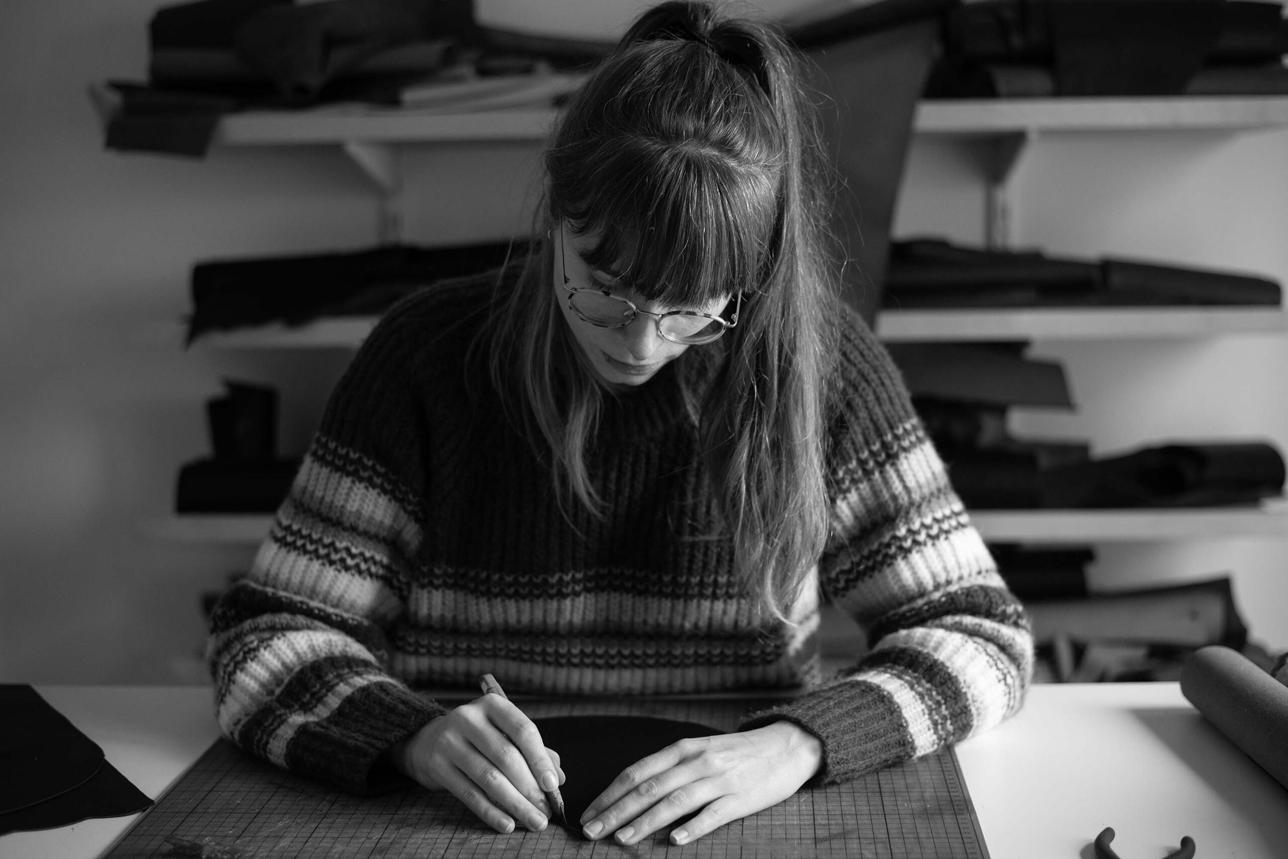 Alle handtassen van Maekers worden op maat gemaakt in het atelier in Antwerpen. Omdat elk ontwerp met de hand wordt vervaardigd, reken je best op een levertijd van minimum zes weken.